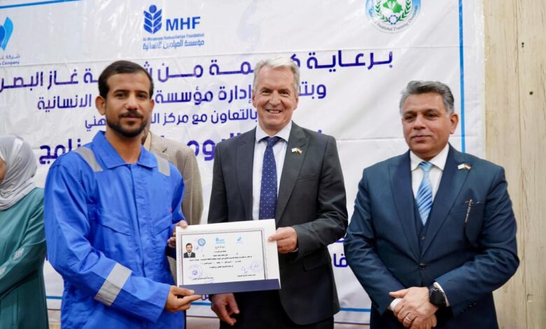 احتفلت شركة غاز البصرة بختام برنامج “أثر” لتدريب ذوي المهن، وذلك بالتعاون مع مؤسسة الميامين الإنسانية ومركز التدريب المهني التابع لوزارة العمل. وقد أتمَّ هذا البرنامج تدريب 120 متقدمًا من كلا الجنسين في مجالات مهنية مطلوبة في السوق المحلية، ودعم إطلاق مشاريع مُدرّة للدخل من خلال توفير العُدد اللازمة لبدء العمل للمشاركين ورفع الوعي حول قانون الضمان الاجتماعي، ومهارات التسويق، وريادة الأعمال إضافة إلى بناء علاقات قوية وموثوقة مع المجتمع المحلي وكذلك تعزيز فرص الحصول على قروض حكومية أو دعم من جهات مانحة لتوسيع تلك المشاريع. كما تضمنت الدورات التدريبية التي امتدت بشقيها العملي والنظري إلى 25 يوما عدة تخصصات منها: الطاقة الشمسية والتبريد والتكييف وأعمال السباكة والديكورات الداخلية والصناعات الغذائية وصيانة الهواتف المحمولة.