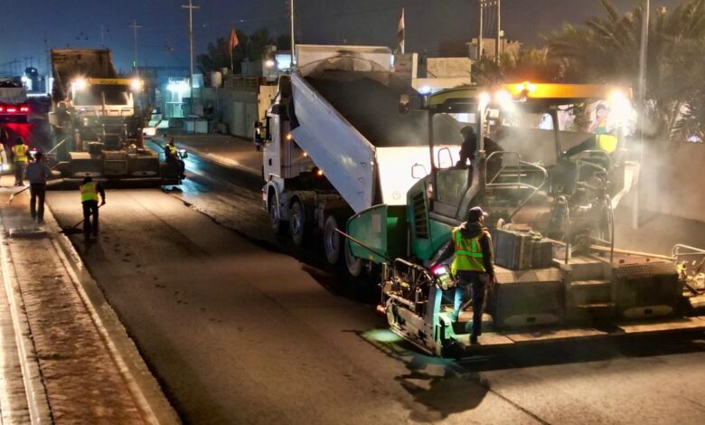البدء بأعمال تبليط الطبقة الاكسائية النهائية المحسنة بالبوليمر لشارع الحوطة في قضاء شط العرب من قبل شركة النرجس .