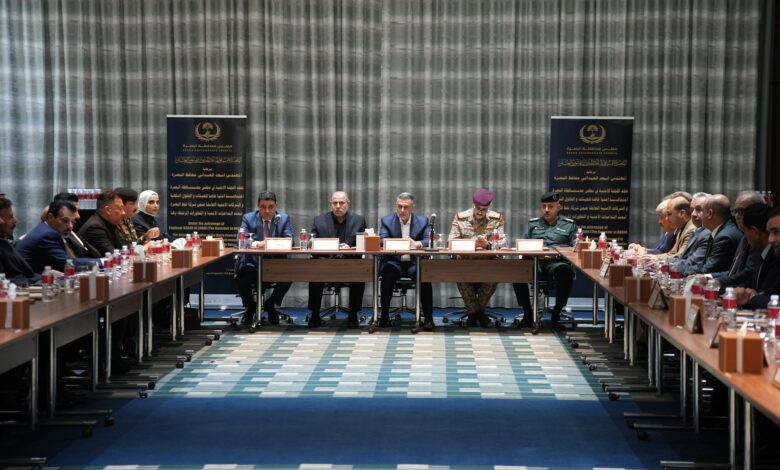 برئاسة محافظ البصرة اسعد العيداني وبحضور رئيس مجلس محافظة البصرة …. عقد اجتماعاً مشتركاً بين القادة الامنيين والشركات النفطية ورئاسة اللجنة الامنية في المجلس ولجنة النفط والغاز